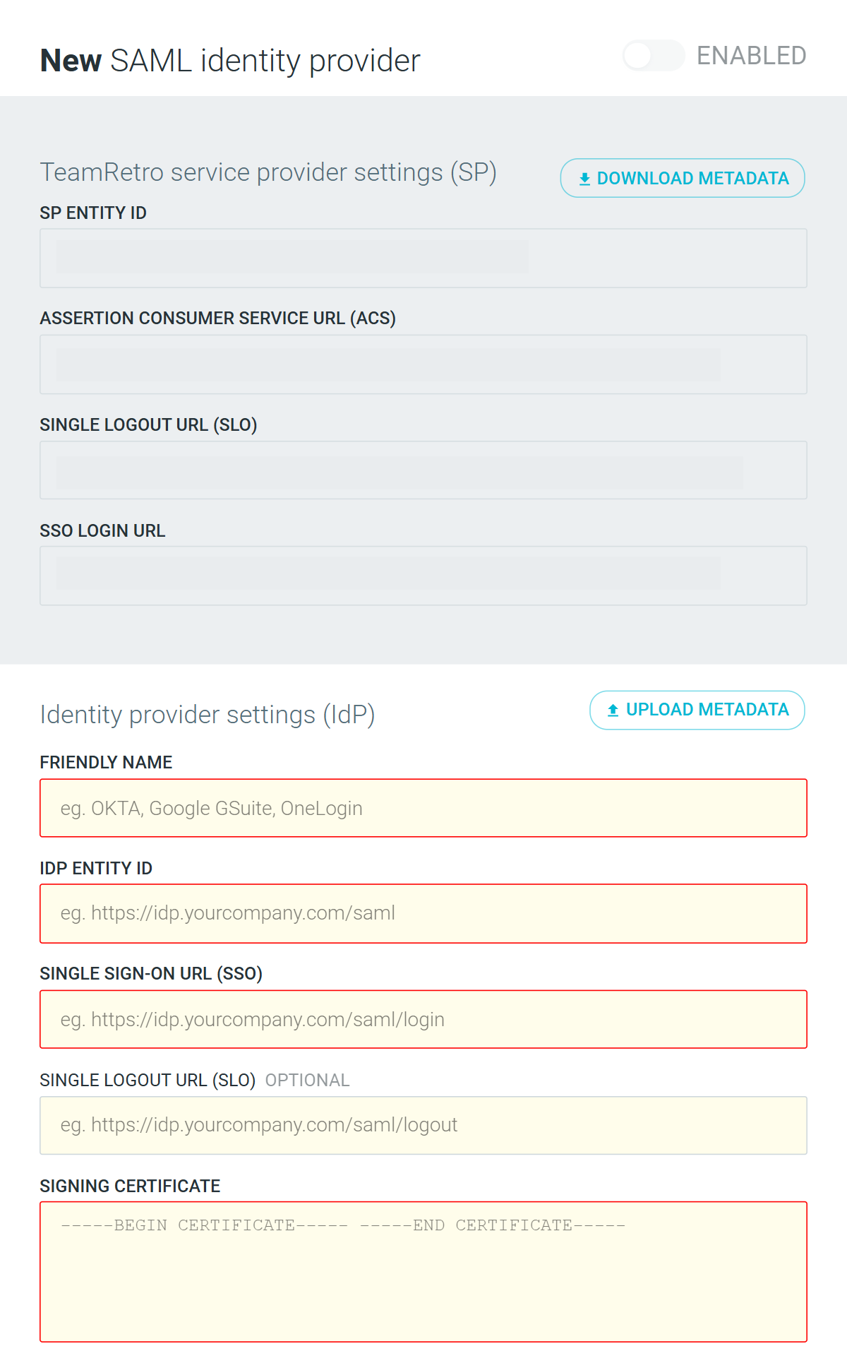- Furthermore, you will have the option to enable REQUIRE SINGLE SIGN ON that will force your users to sign in through your IdP to gain access to TeamRetro. They will no longer be able to log in to TeamRetro through the normal username/password combination. However, you can also enable BYPASS SINGLE SIGN ON FOR GUEST PARTICIPANTS so that any guests you do invite don't need to sign through your IdP. Account owners will be able to login (bypass) through the standard username/password combination in case there is an issue with the configuration and/or needs to be updated.