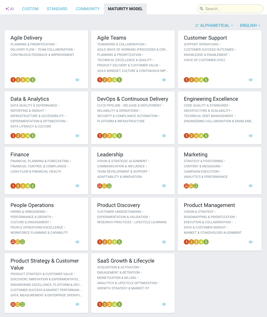 We’ve added 15 new maturity-model–based health checks, designed to help teams assess where they are today and plan their improvement journey. These models provide clear descriptions for each stage of maturity across different aspects of your organization, helping teams align on expectations and choose meaningful next steps for growth.
