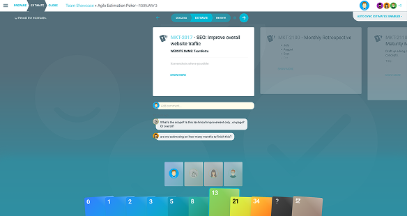 The new estimation flow guides your team through story-by-story estimation with real-time collaboration. Anonymous voting helps prevent anchoring bias, while simultaneous reveal encourages honest input from everyone. When estimates differ, the discussion naturally focuses on assumptions, risks, and unknowns — helping teams reach genuine consensus instead of settling too quickly.