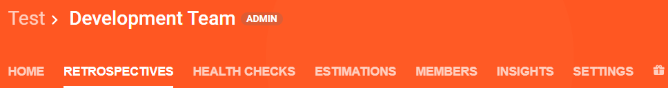 Navigate to the RETROSPECTIVES, HEALTH CHECKS, or ESTIMATIONS tab within a specific team.