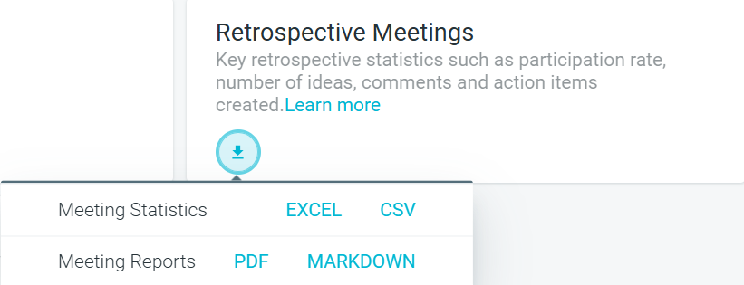 2. Find the RETROSPECTIVE MEETINGS option. Click DOWNLOAD and choose the desired format.