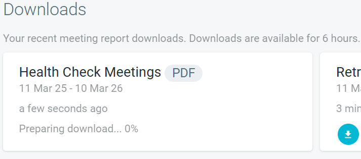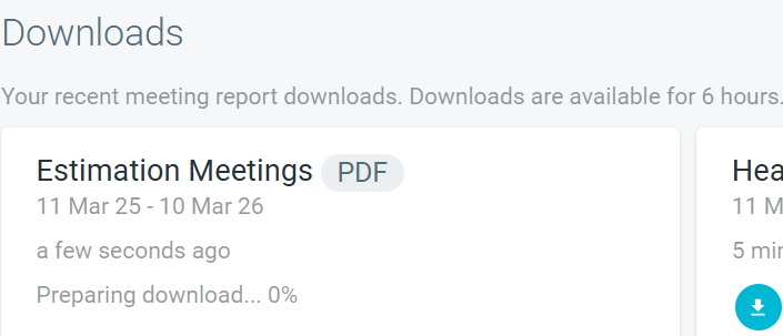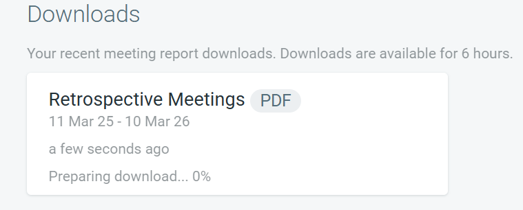 Team Admins can request a ZIP file containing all retrospective, health check, and/or estimation meeting reports (in PDF format) for a team.
