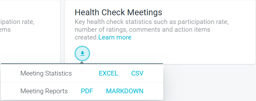 Downloading all HEALTH CHECKS will also download all Maturity Model meetings your team has run (if applicable).