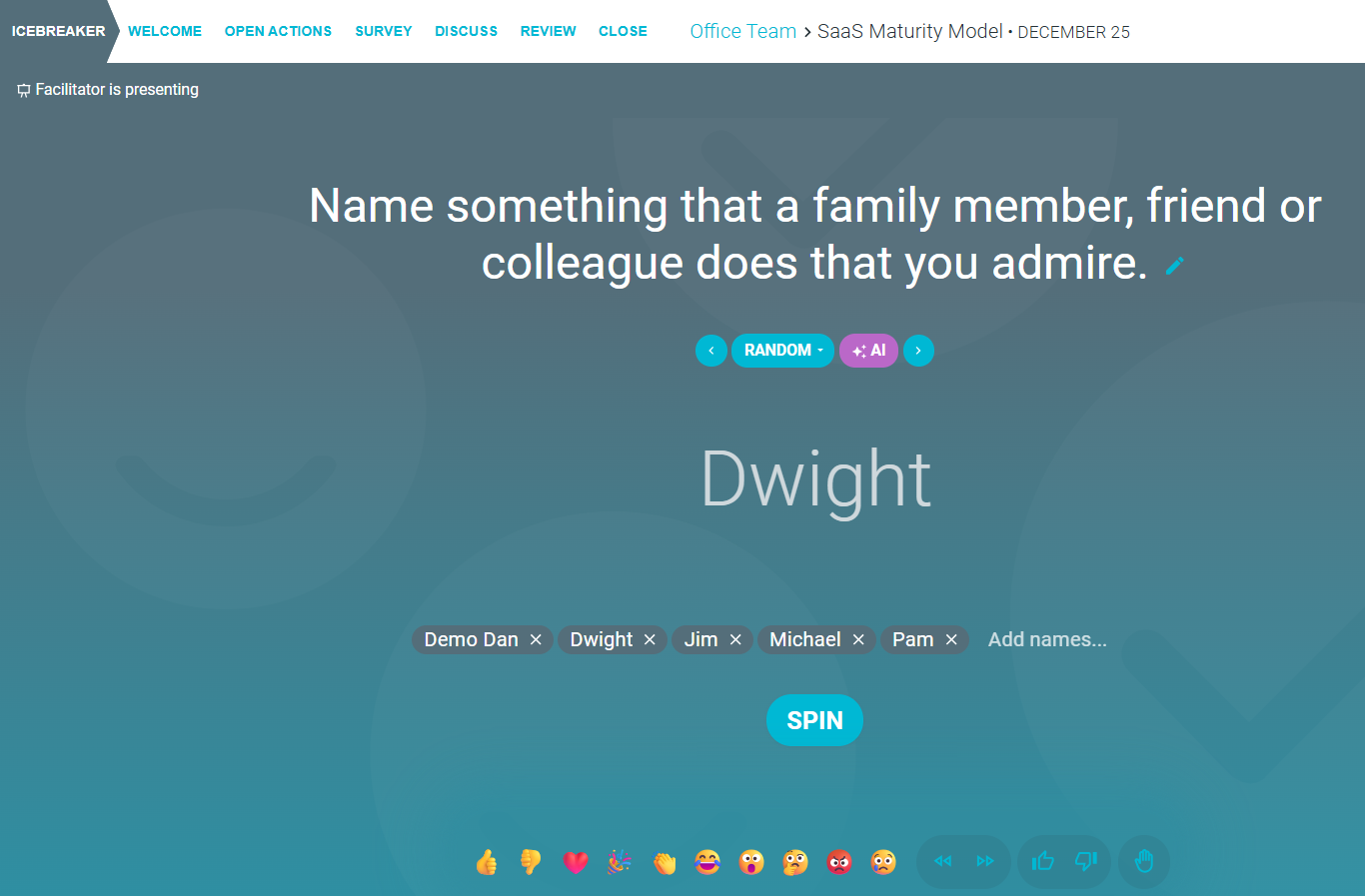 Start by setting the tone with an icebreaker question. This encourages early participation and helps everyone get comfortable before diving into the main activities. A fun prompt can boost engagement and create a psychologically safe environment.