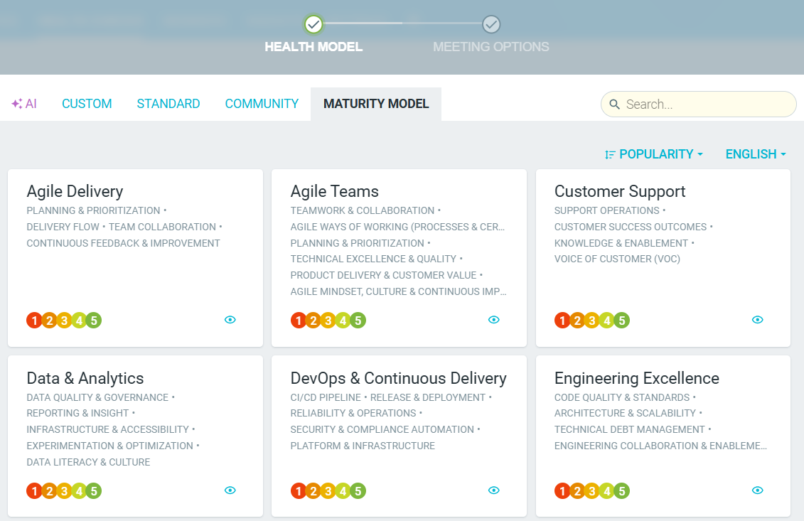 - When you're ready, click START HEALTH CHECK, and your maturity model is ready for your team!