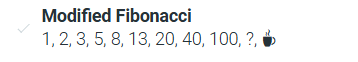 (0, ½, 1, 2, 3, 5, 8, 13, 20, ?, ☕)